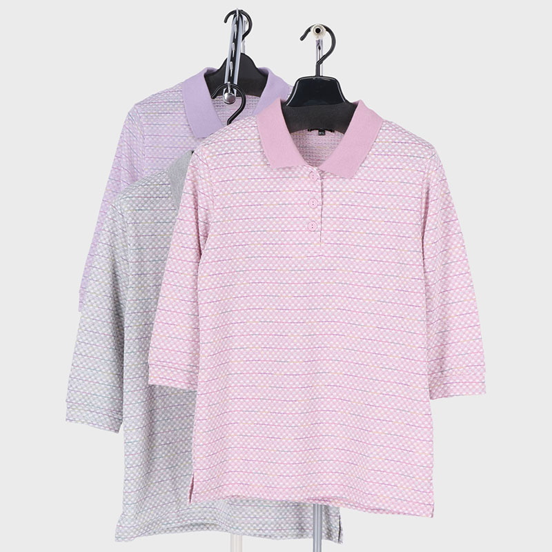 婦人大寸7分袖ジャガードポロシャツ