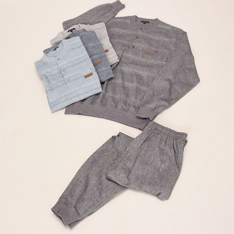 長袖麻混楊柳前身プリントヘンリースーツ