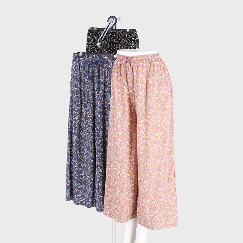 婦人9分丈ひんやりふわりら小花柄ワイドパンツ
