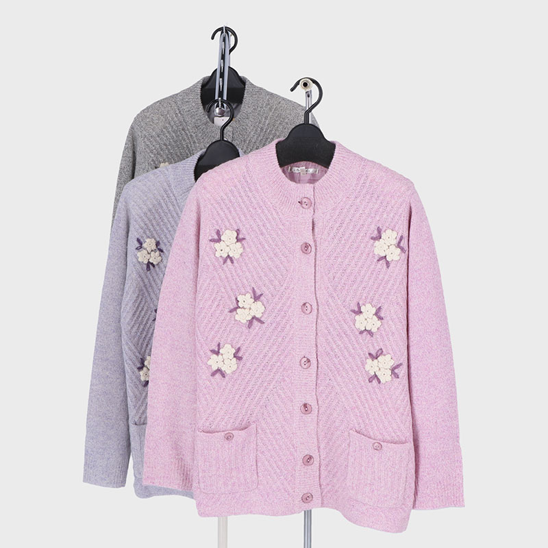 婦人アンゴラ混モチーフカーディガン