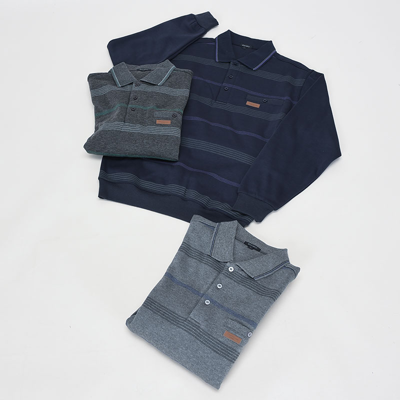 紳士大寸裏起毛前身ボーダーポロトレーナー
