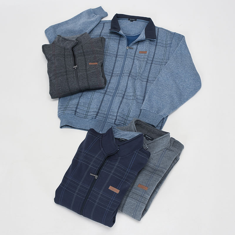 紳士大寸裏起毛前身格子フルジップジャケット