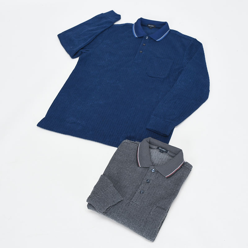 紳士大寸パイル裏起毛長袖ポロシャツ