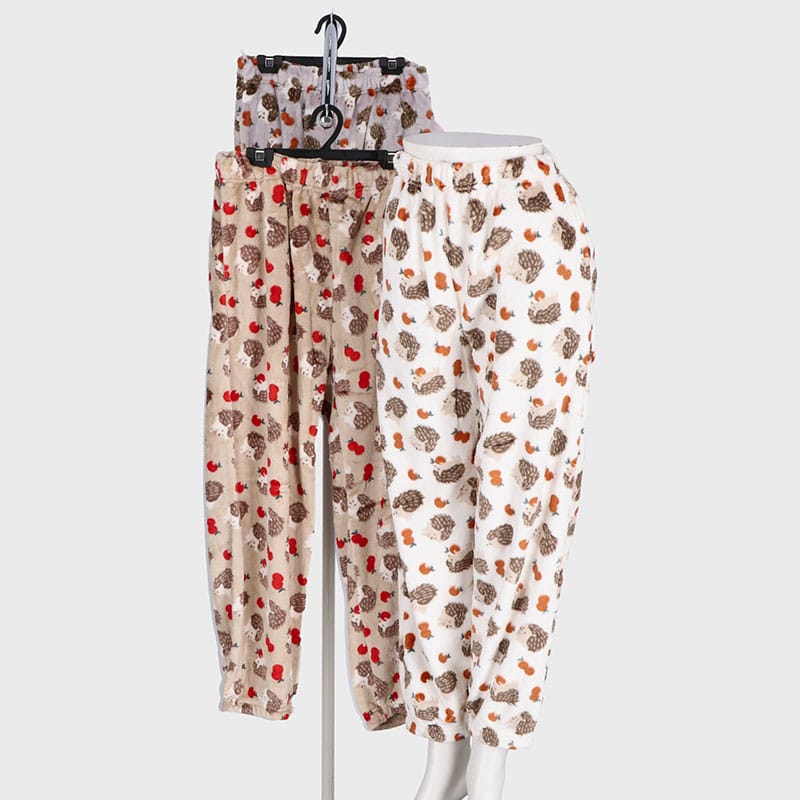 婦人フリースハリネズミ柄裾ゴムパンツ