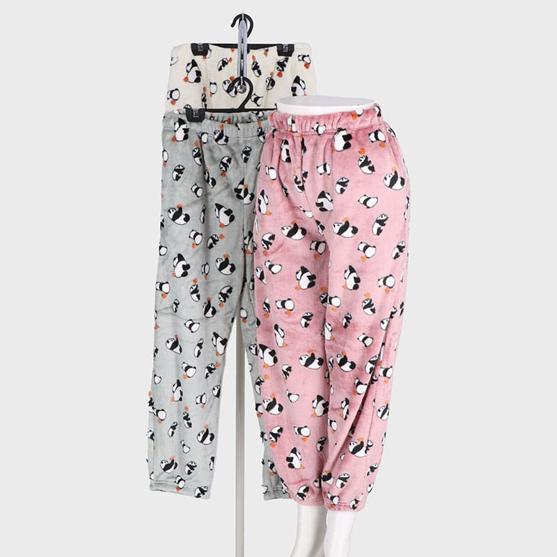婦人フリースパンダ柄裾ゴムパンツ