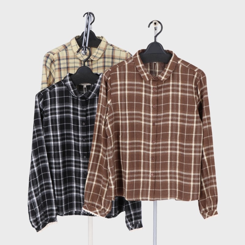 婦人長袖表起毛丸衿袖口レースブラウス