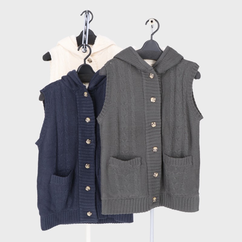 婦人3G裏ボアフード付きニットベスト