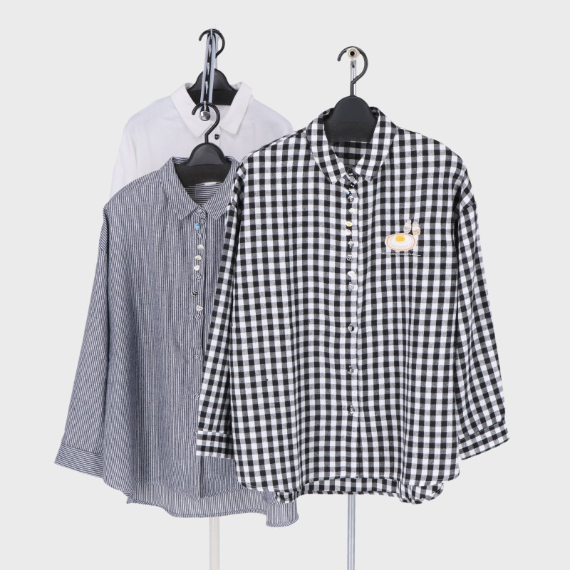 婦人多ボタン目玉焼き刺しゅう入りシャツ