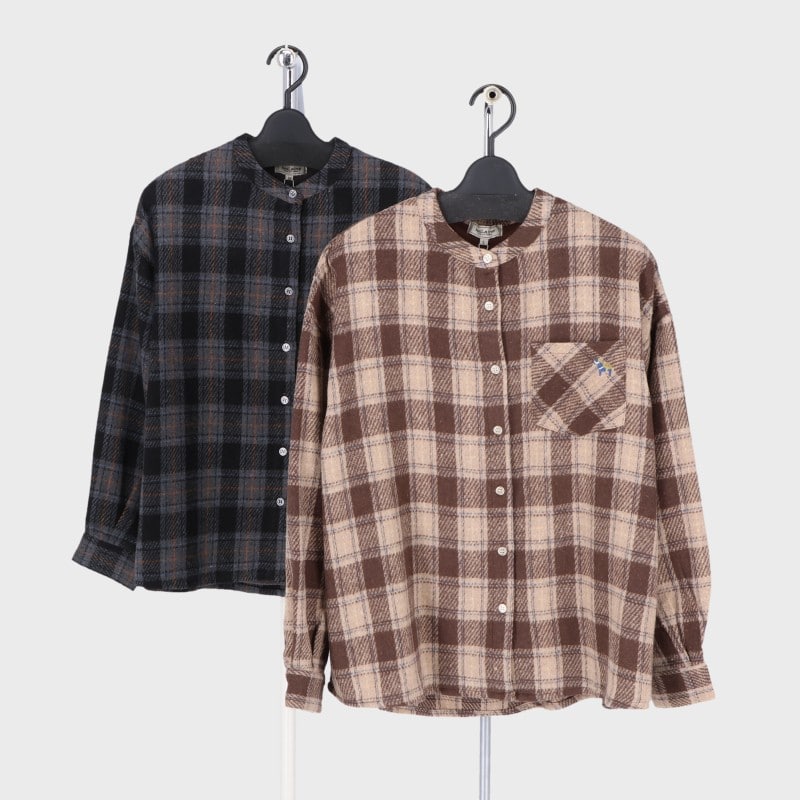 婦人背フリース表起毛マオカラーシャツ