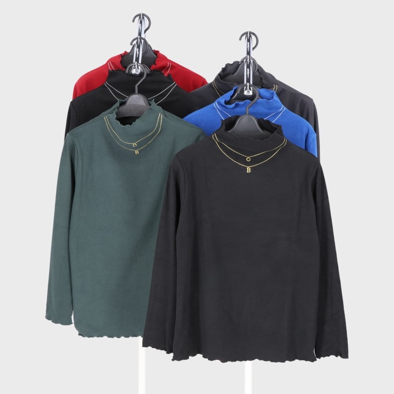婦人ピーチ起毛ペンダント刺しゅうTシャツ