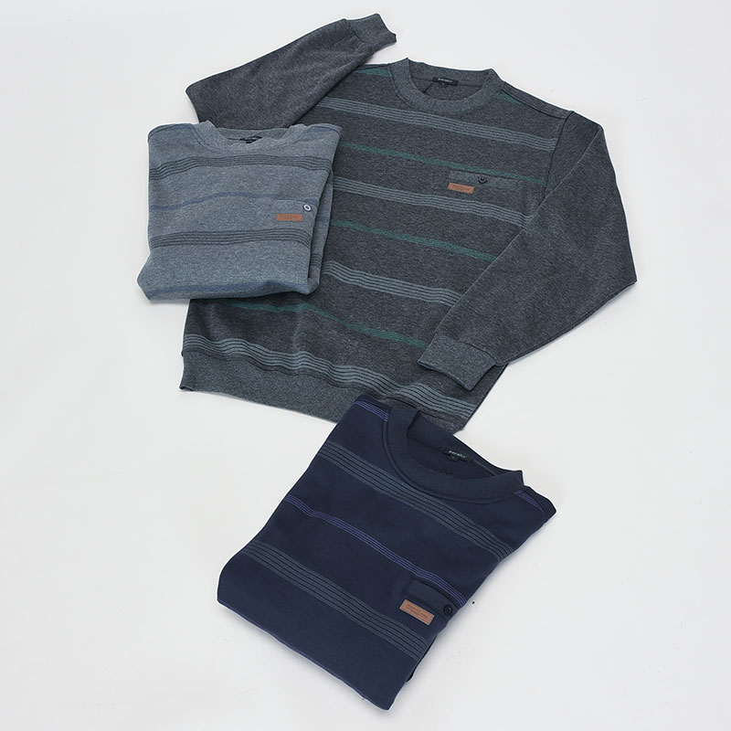 紳士大寸裏起毛前身ボーダー丸首トレーナー