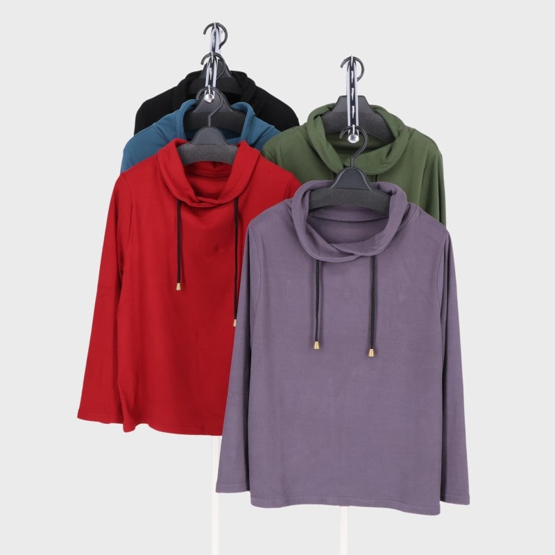 婦人ピーチ起毛チビフード付きTシャツ