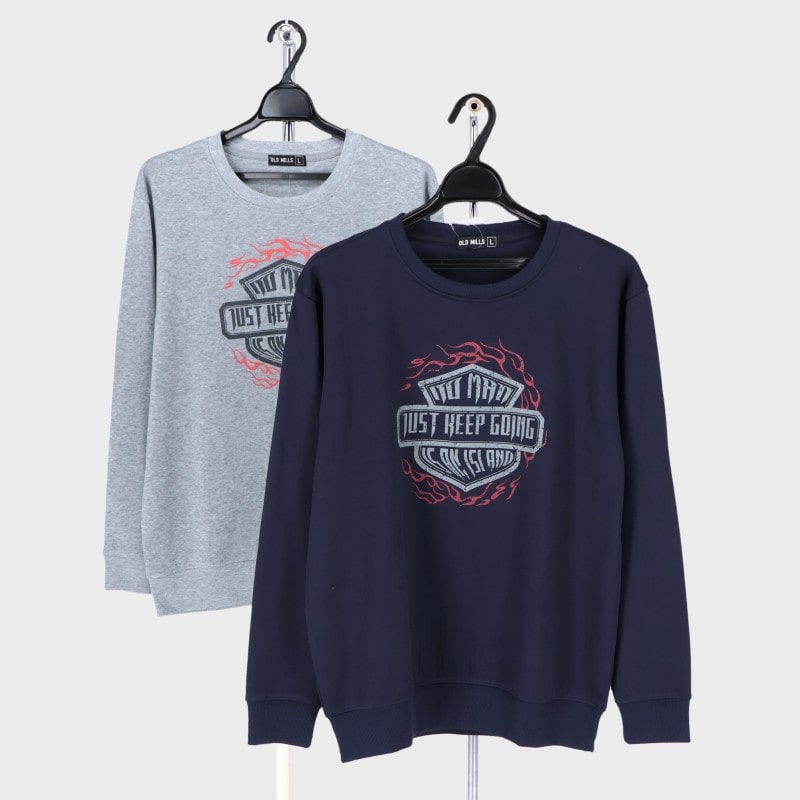 紳士大寸裏起毛クルートレーナヴィンテージ柄