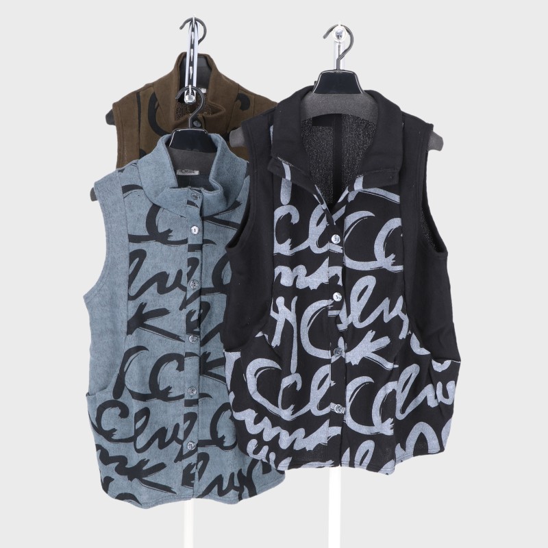 婦人表起毛プリント切り替えベスト