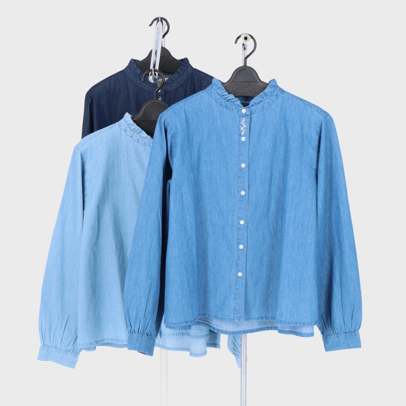 婦人長袖デニムメロウ衿ブラウス