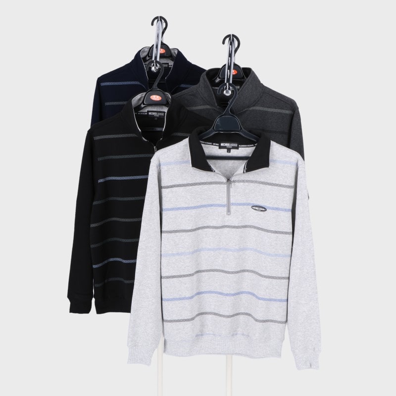紳士長袖ブランド裏起毛ハーフジップトレーナ