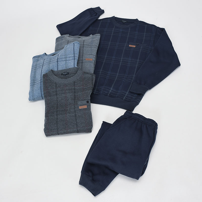 紳士大寸裏起毛前身格子丸首スーツ
