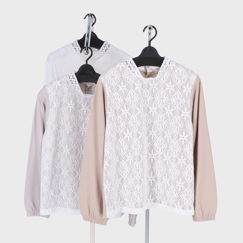 婦人長袖ミニ裏毛前身レースプルオーバー