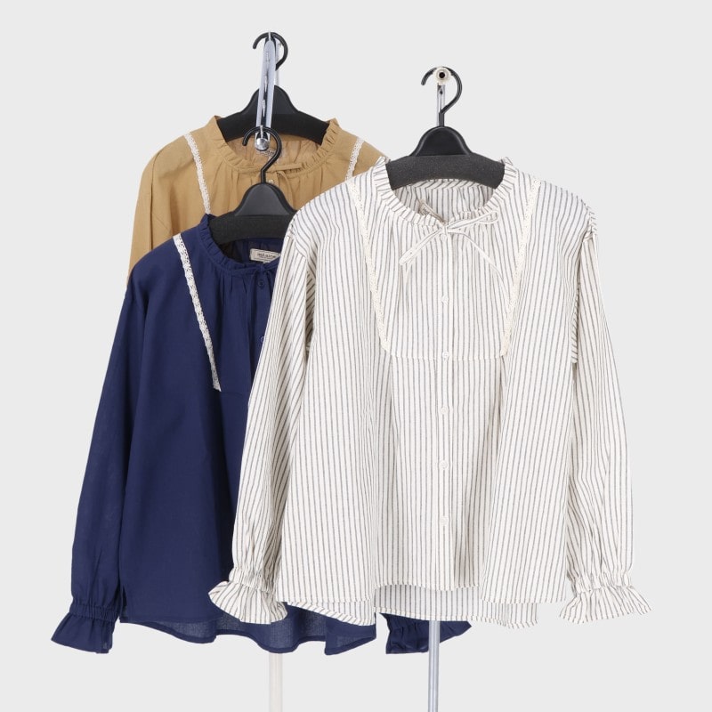 婦人長袖リボン付きブラウス