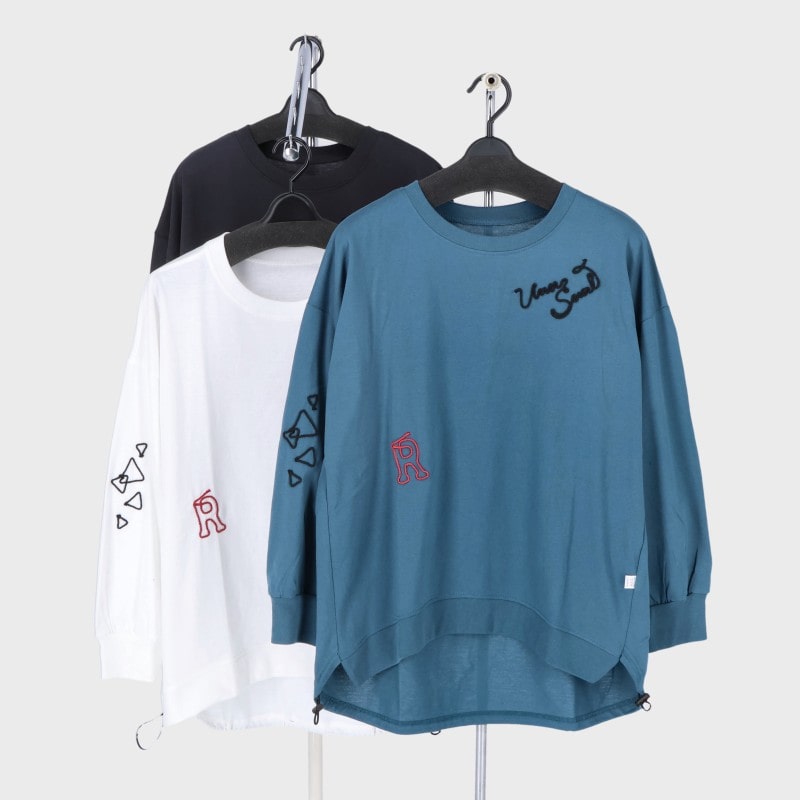 婦人長袖裾ドロストコード刺繍プルオーバー