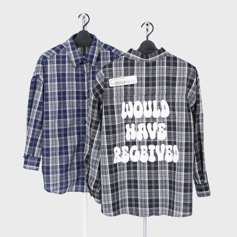 婦人バックプリントチェックシャツ