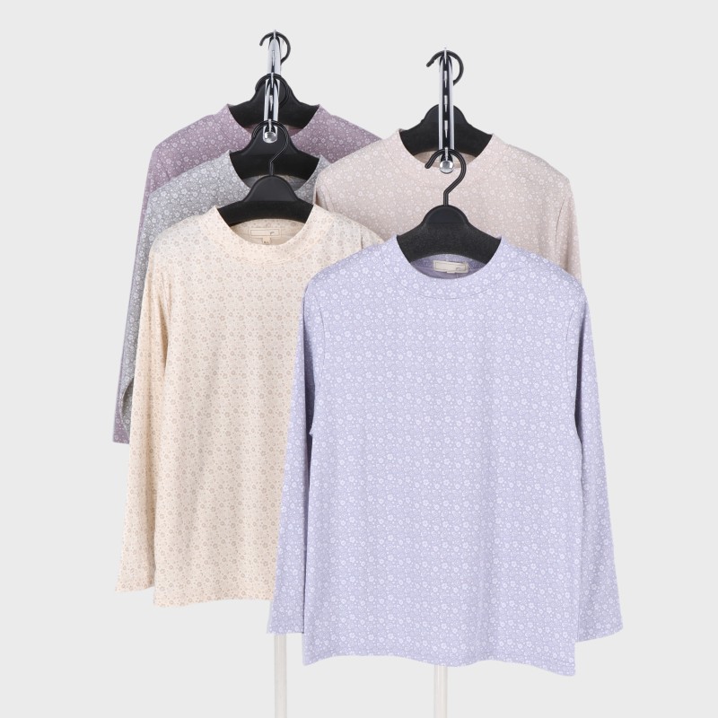 婦人大寸長袖総柄プリントTシャツ
