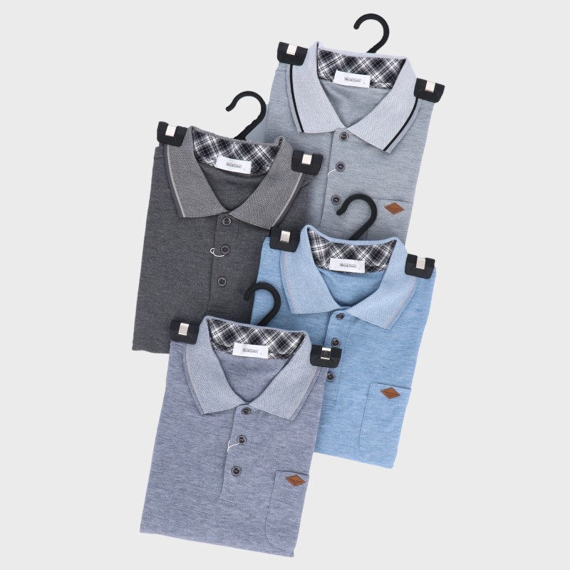 紳士長袖無地鹿の子ポロシャツ