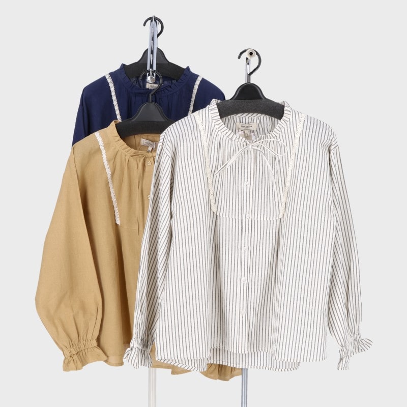 婦人長袖リボン付きブラウス