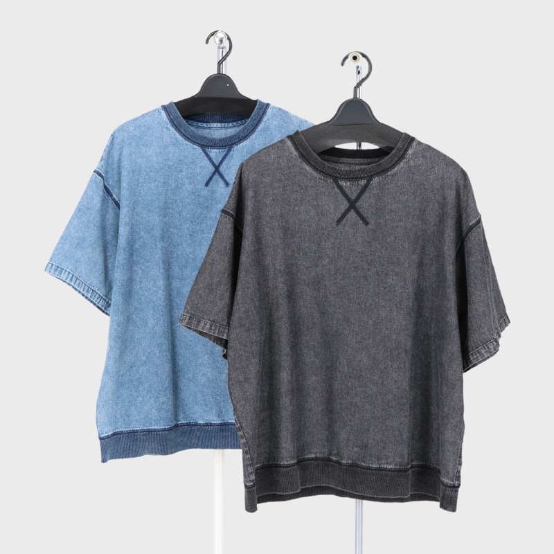 婦人綿100%ケミカル加工デニムワイドプルオーバー