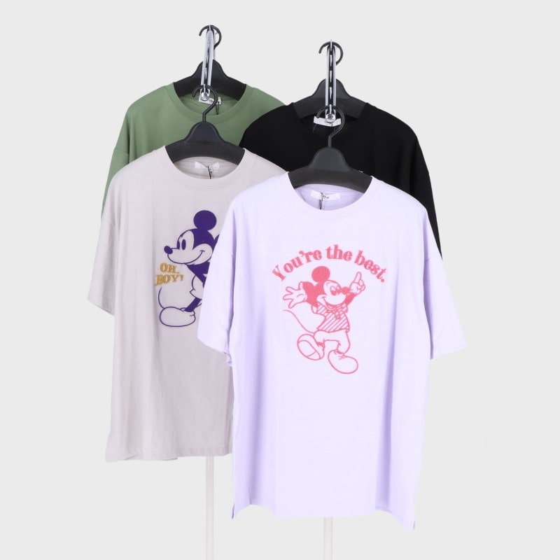 婦人半袖ミッキー刺繍入りTシャツ