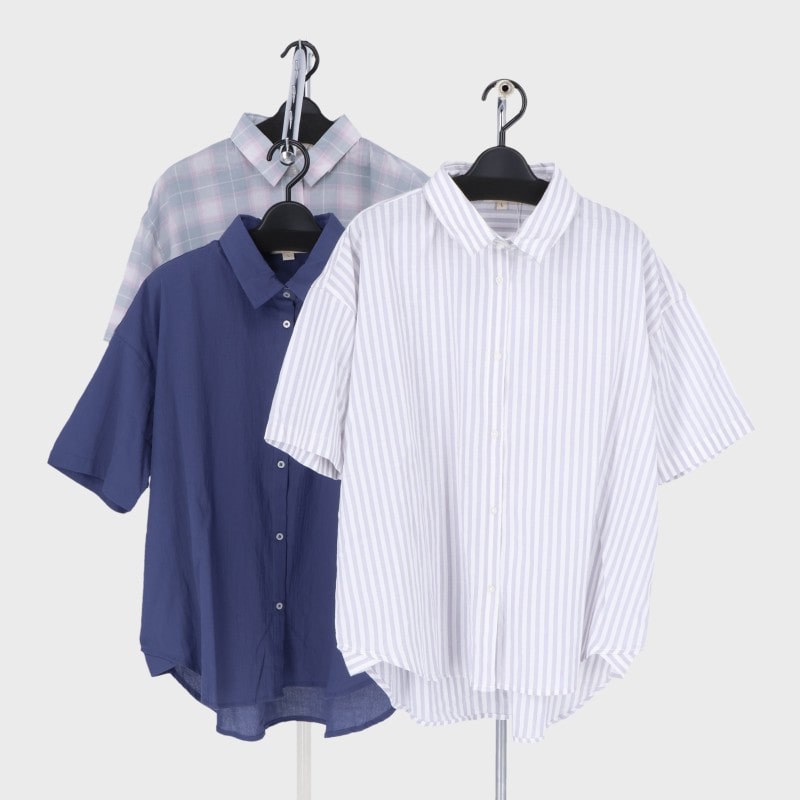 婦人5分袖シワ加工シャツ
