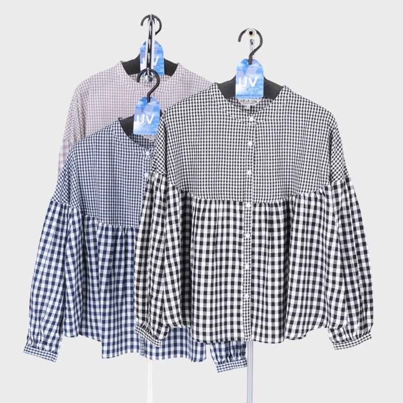 婦人格子柄切替えシャツ