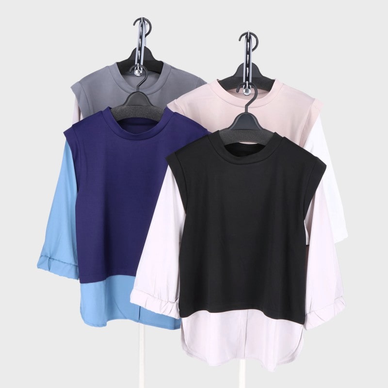 婦人7分袖フェイクTシャツ