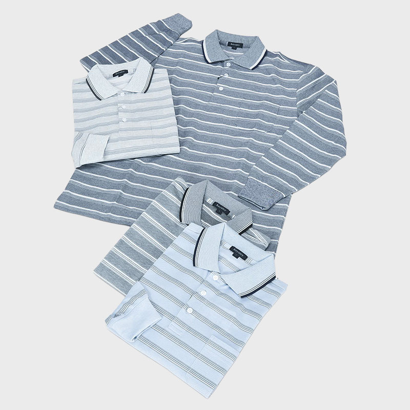 長袖ボーダーポロシャツ