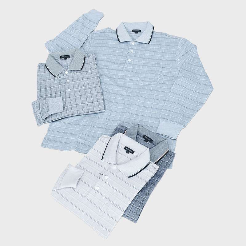 長袖鹿の子格子ポロシャツ