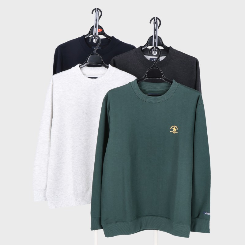 紳士ブランド裏毛ワッペン付き丸首トレーナー