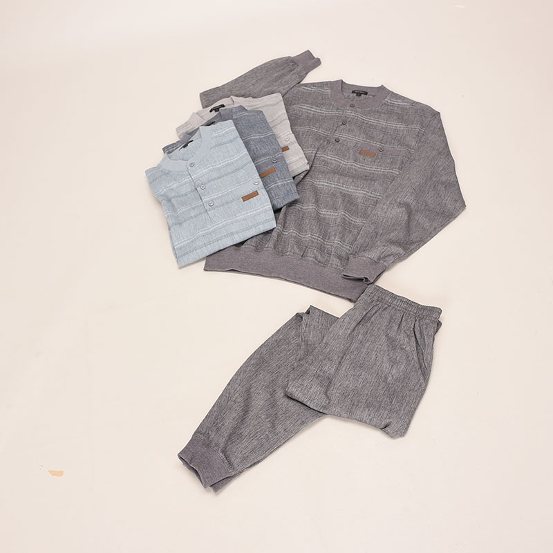 長袖麻混楊柳前身プリントヘンリースーツ