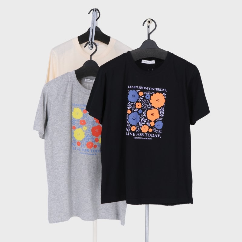 婦人大寸半袖モチーフ柄Tシャツ1