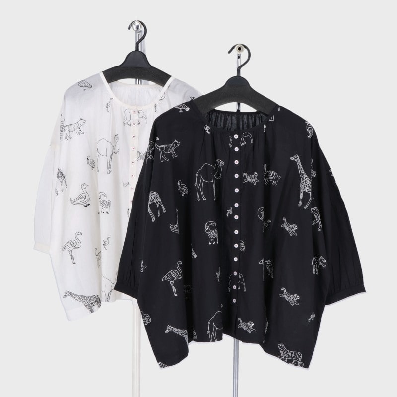 婦人綿100%アニマル刺繍入りブラウス