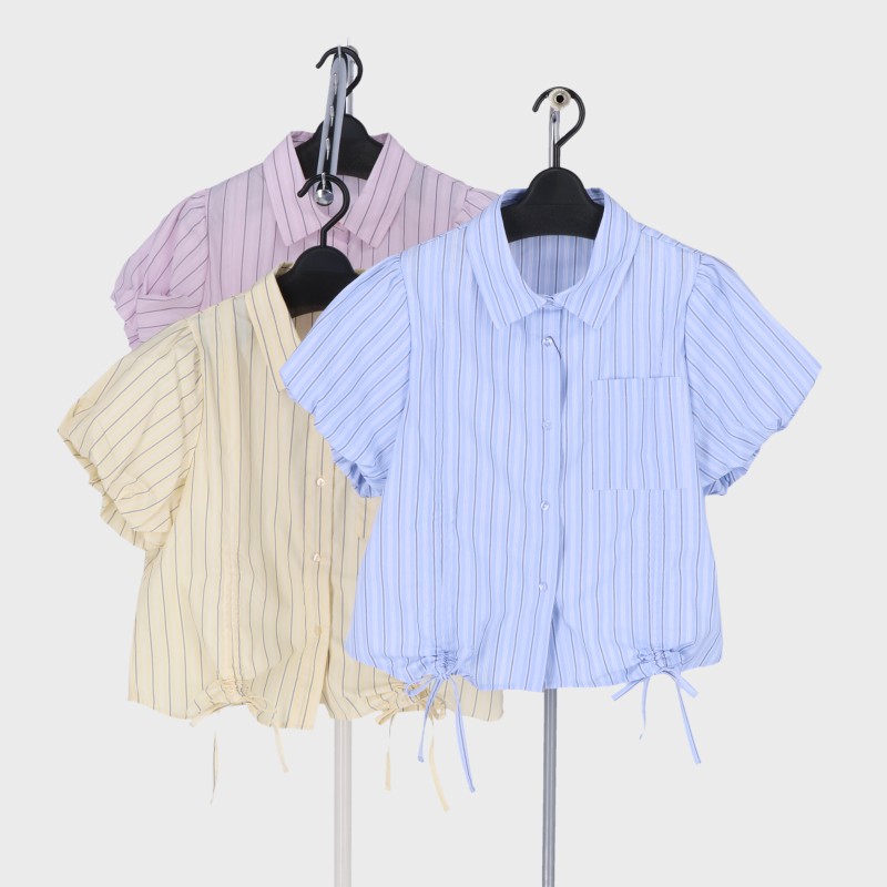 婦人マルチストライプ柄裾ドロストシャツ