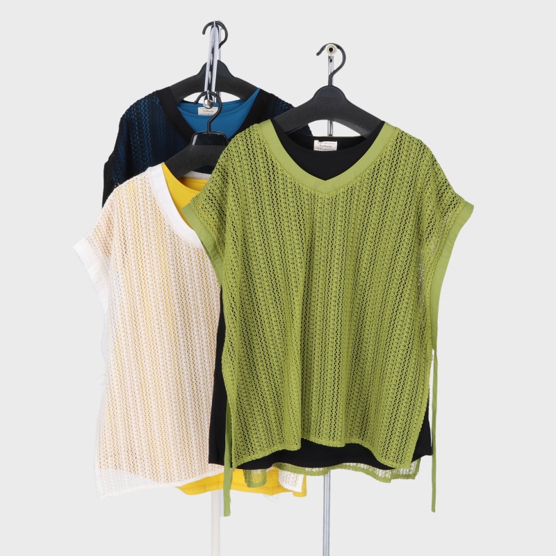 婦人レースベスト×半袖プルオーバーアンサンブル