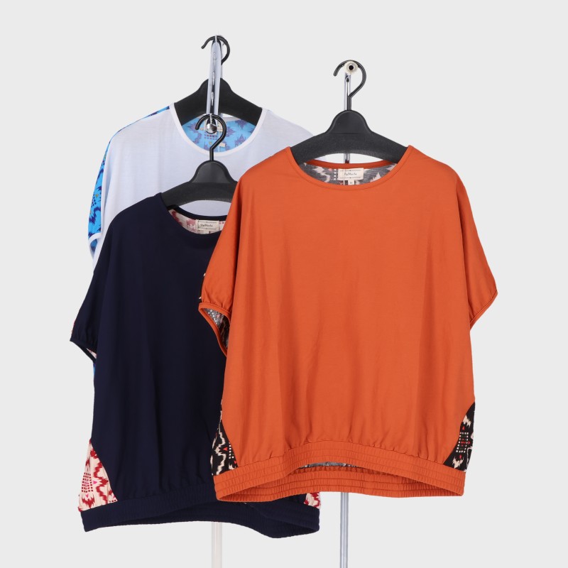 婦人半袖背面布帛切替裾ゴムプルオーバー