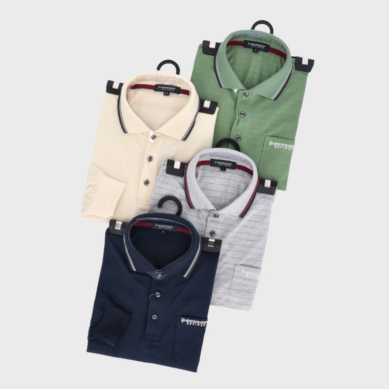 紳士大寸長袖ブランド格子ポロシャツ