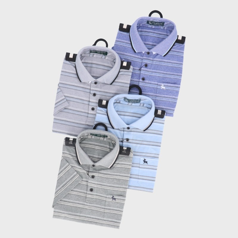 紳士小寸麻混半袖格子ポロシャツ