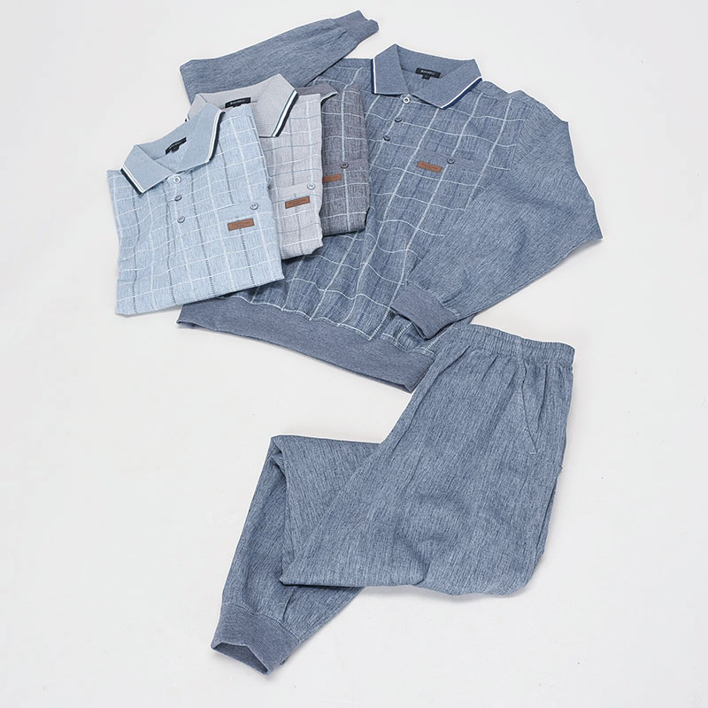 長袖麻混楊柳前身プリントポロスーツ