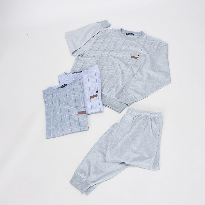 紳士大寸長袖麻混前身プリント丸首スーツ