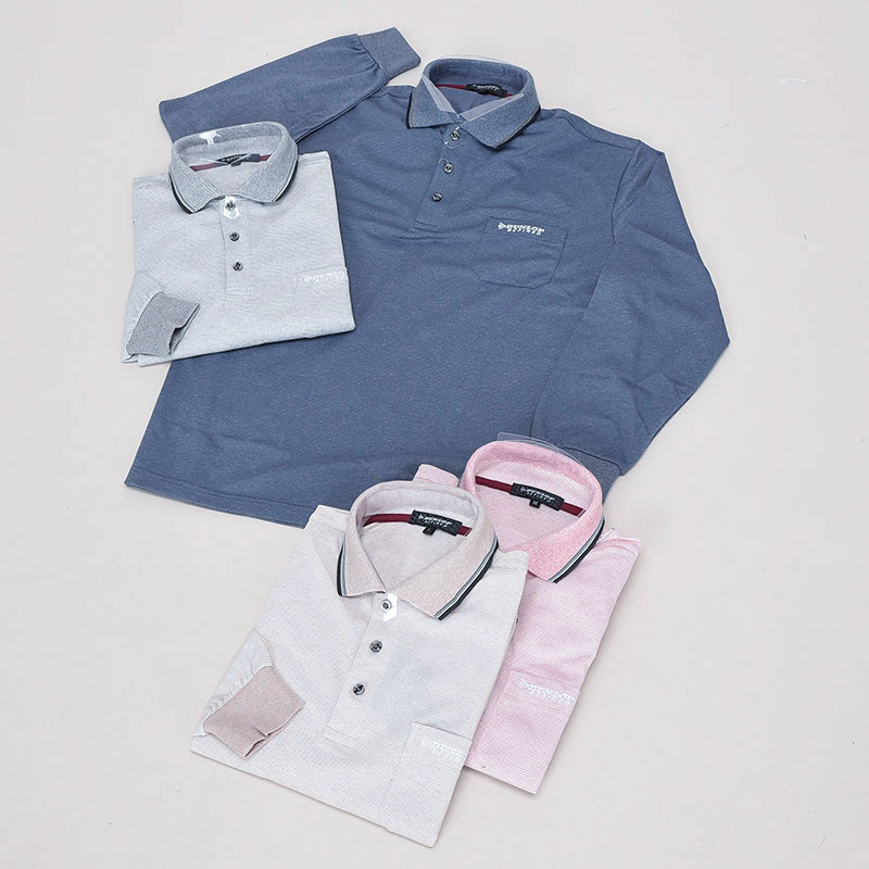 紳士長袖ブランドジャガード鹿の子ポロシャツ