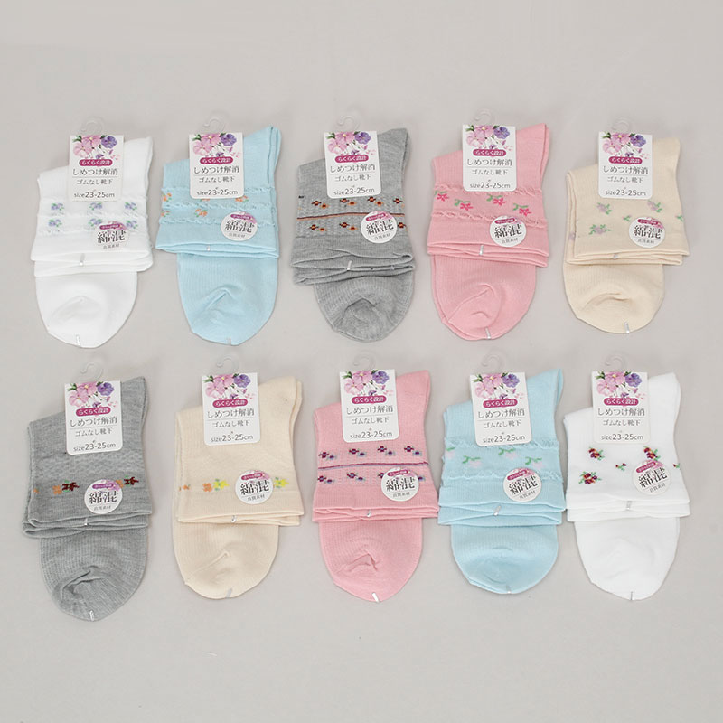 【バンドル】婦人『しめつけ解消』ゴムなし柄クルー丈ソックス