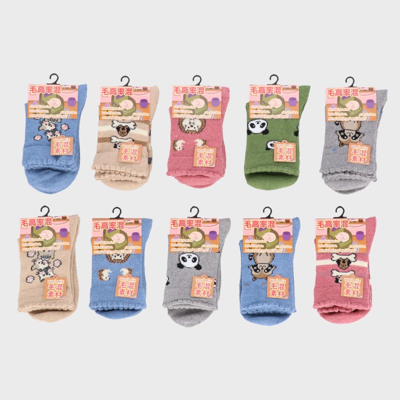 【バンドル】婦人『毛高率混』アニマル柄クルー丈ソックス