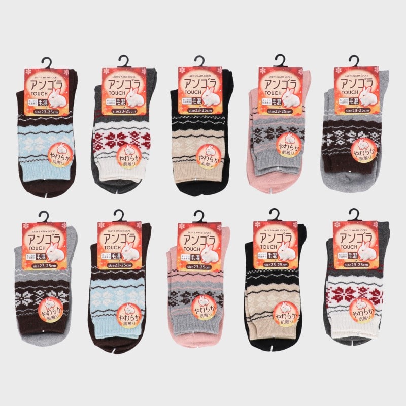 【バンドル】婦人『アンゴラTOUCH』柄クルー丈ソックス